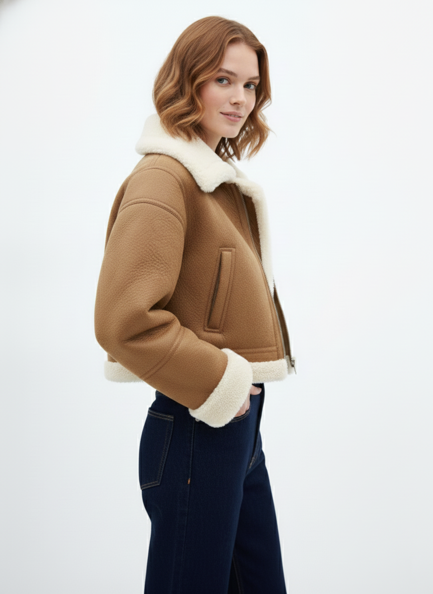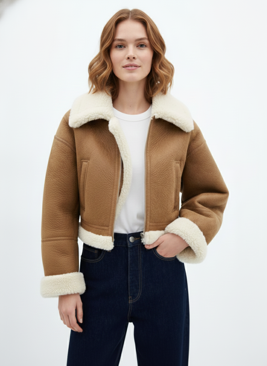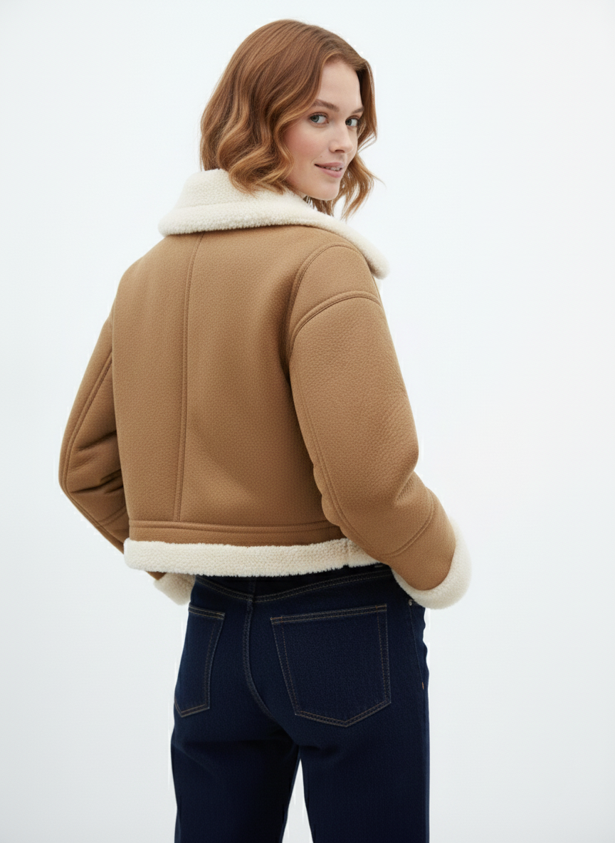 Chic Warmth: The Cropped Faux Shearling Aviator Jacket