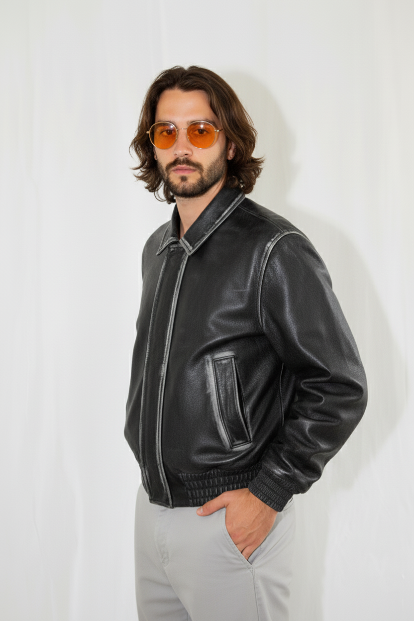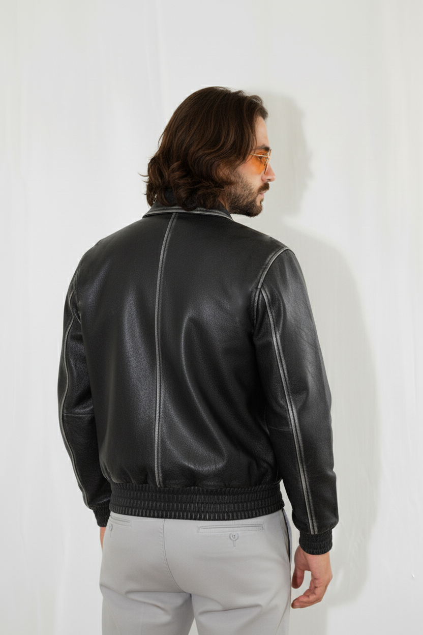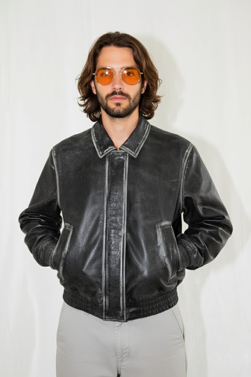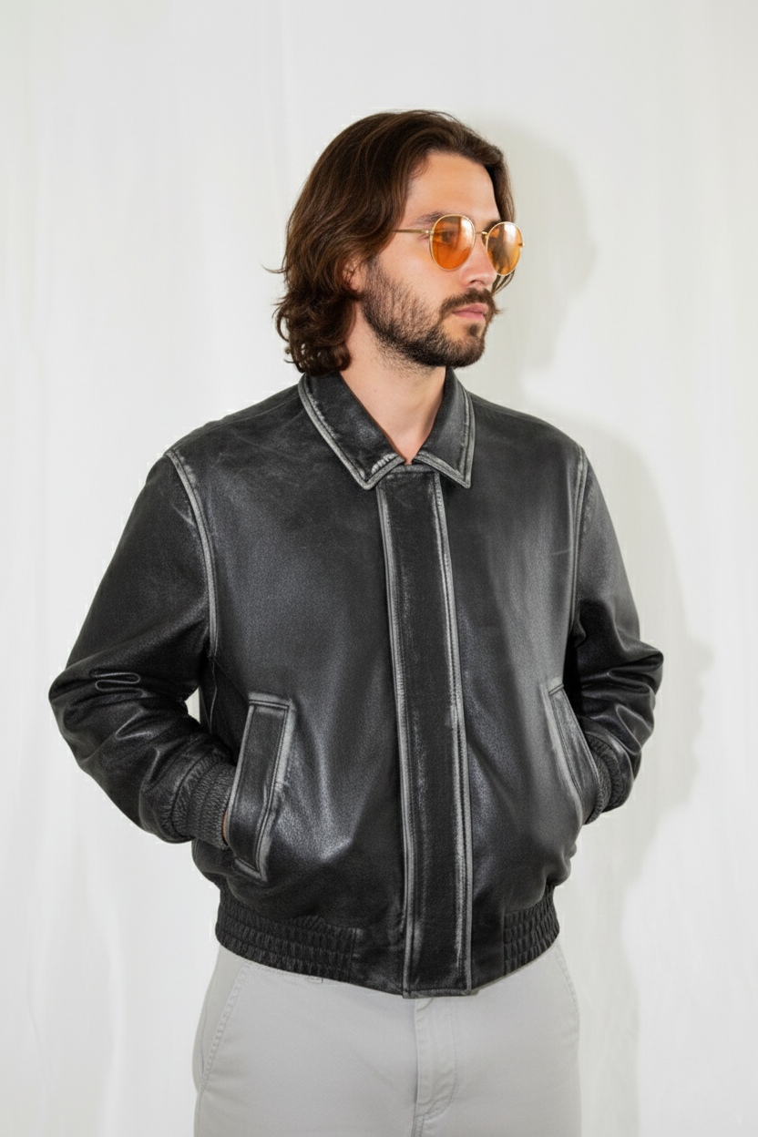 Vintage Edge, Modern Style: The Distressed Black Leather Bomber