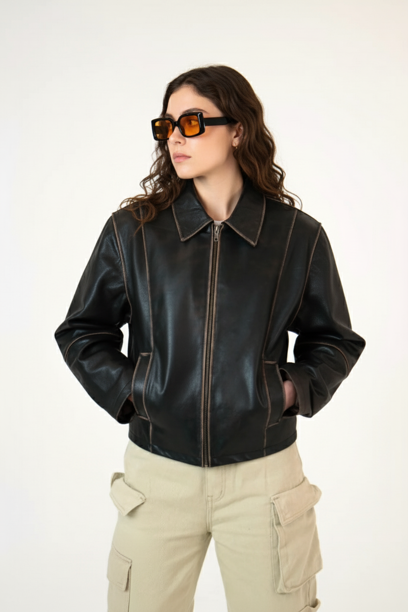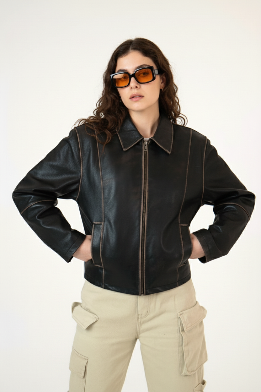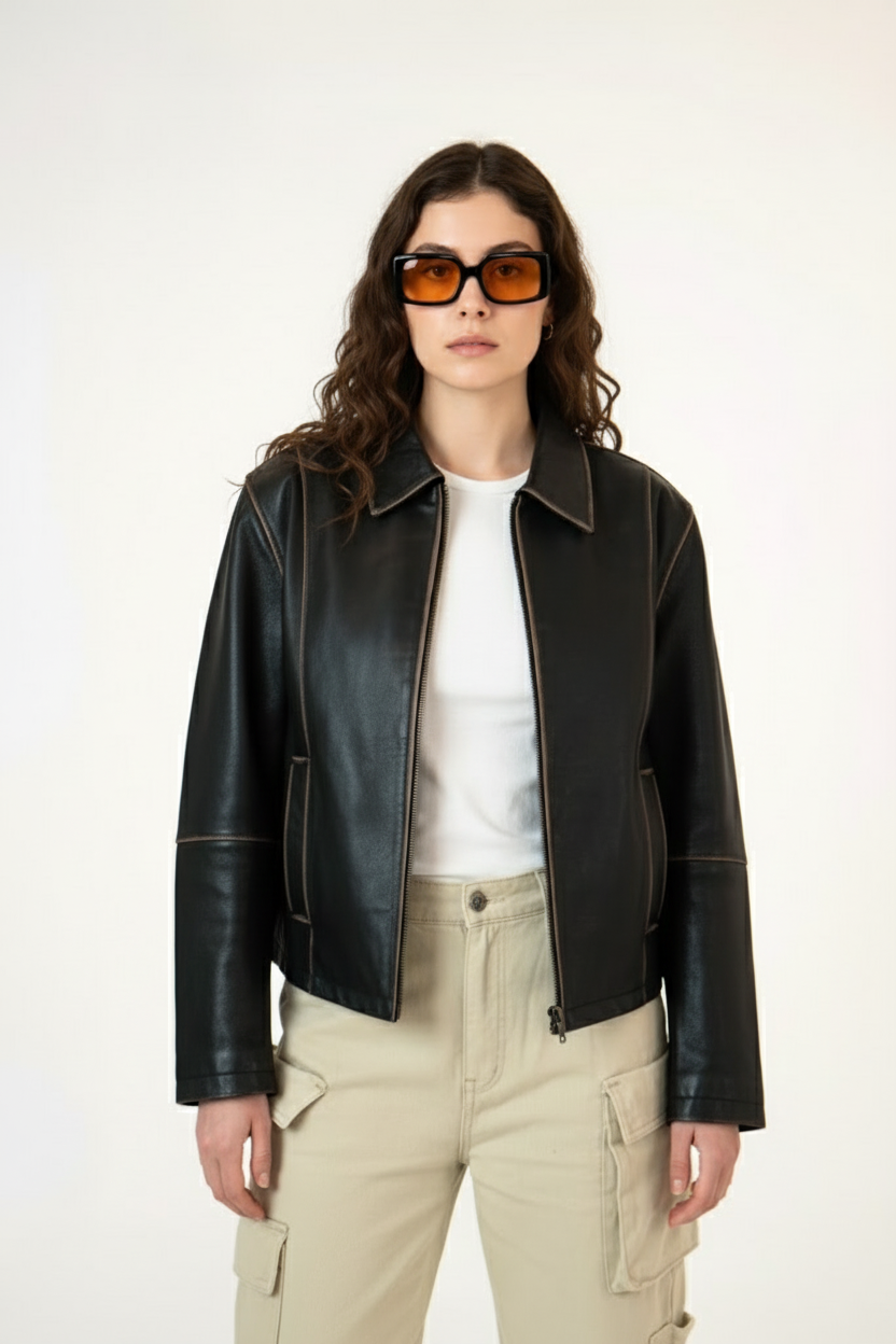 Womens’s Boxy Black Leather Jacket is the essential piece for modern style. This premium leather jacket is meticulously handmade, offering superior craftsmanship and a timeless aesthetic that will last for years. Crafted from genuine, high-quality real leather, it delivers a luxurious feel and a beautiful, natural texture.